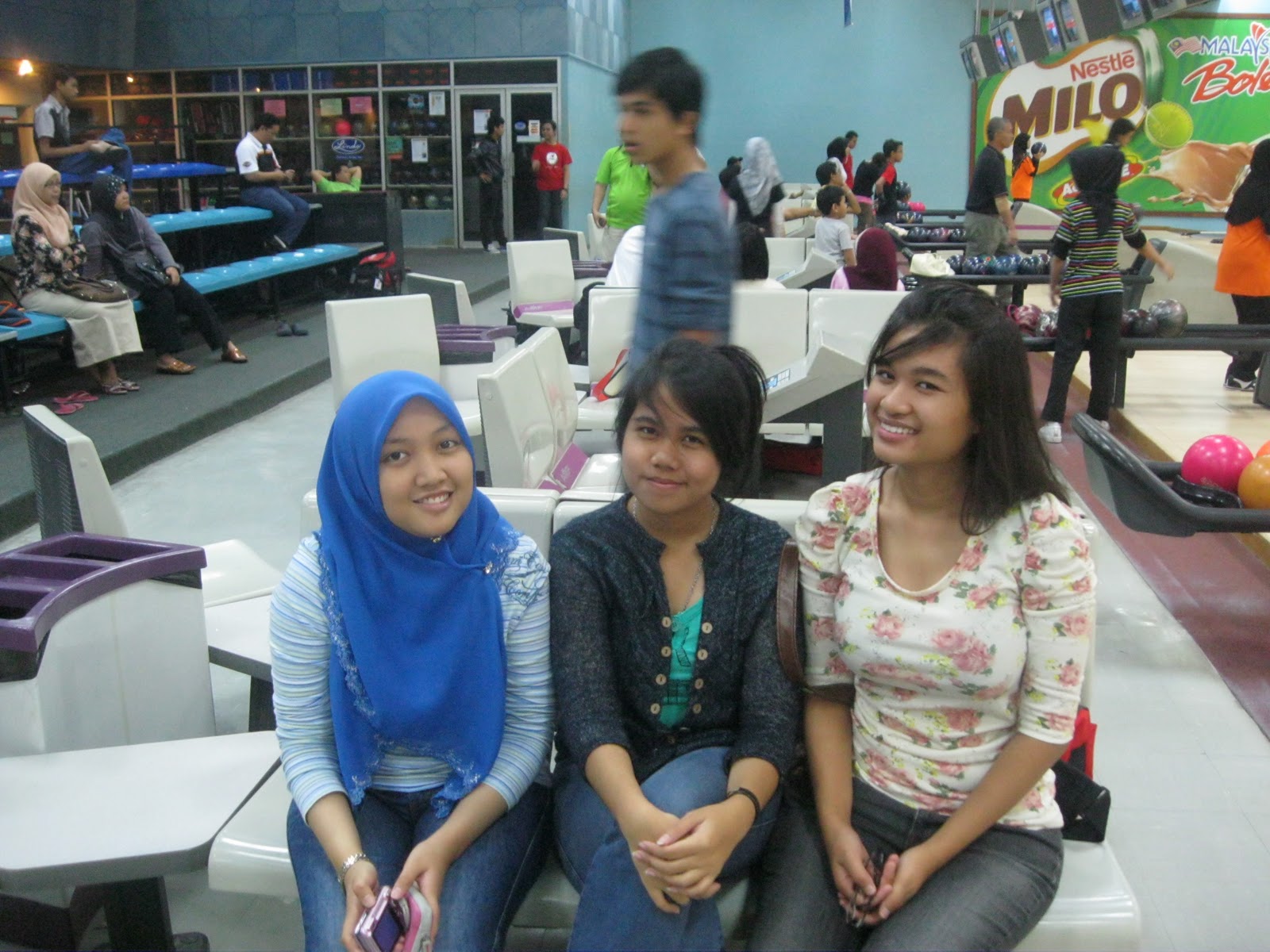budak tue? hah tu adik mis line.. she was cute man. sumpah cute.. i luv kids.budak nie pon actually main bowling td. ade la strike td. strike kat lonkang jew.hahaaa..